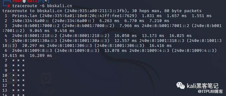 traceroute -6 bbskali.cn