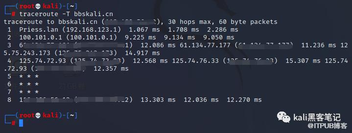 traceroute -T bbskali.cn