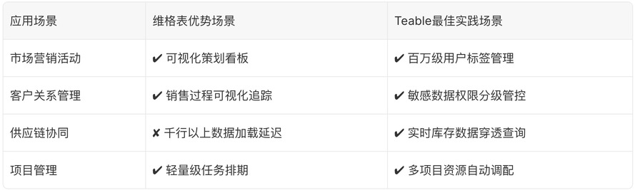 维格表持续深耕「C端转化B端」路径,通过降低用户门槛扩大市场基数。Teable则聚焦企业级应用护城河: