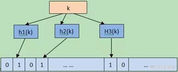 但是bitmap方法有一个非常大的缺点,就是它的冲突会非常高,因为同用一个哈希函数,极有可能将两个不同的URL或者多个不同的URL映射到一个位置上来。实际上这种哈希的方法,它也是set方式的一种实现原理,它将URL进行一种函数计算,然后映射到bit的位置中去,所以这种方式对内存的压缩是非常大的。简单的来计算一下,还是以一亿条URL来进行计算,相当于一亿个bit,通过计算得到其相当于12500000byte,除以1024之后约为12207KB,大概是12MB的空间。在实际过程中内存的占用可能会比12MB大一些,但是即便是如此,相比于前面三种方法,这种方式以及大大的减少了内存占用的空间了。但是与此同时,该方法产生冲突的可能性是非常大的,所以这种方法也不是太适用的。那么有没有方法将bitmap这种对内存浓重压缩的方法做进一步优化,让冲突的可能性降下来呢?答案是有的,就是第五种方式。