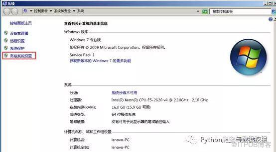 6、之后弹出下图的系统界面,然后选择左侧栏目中的“高级系统设置”。