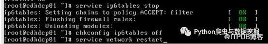 4、关闭防火墙,输入service ip6tables stop,之后右边会出现绿色的ok字样,代表关闭成功。