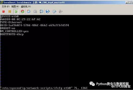 2、之后输入vi /etc/sysconfig/network-scripts/ifcfg-eth0,或者vim /etc/sysconfig/network-scripts/ifcfg-eth0,殊途同归,看个人喜欢了。进入网络配置的界面,如下图所示。