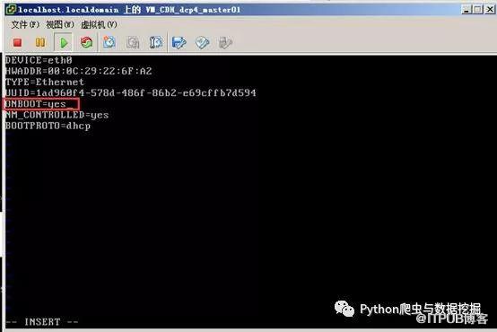 2)之后修改ONBOOT=yes即可,其他的默认,也不需要增添任何的IP、网关等,修改完成之后保存退出。