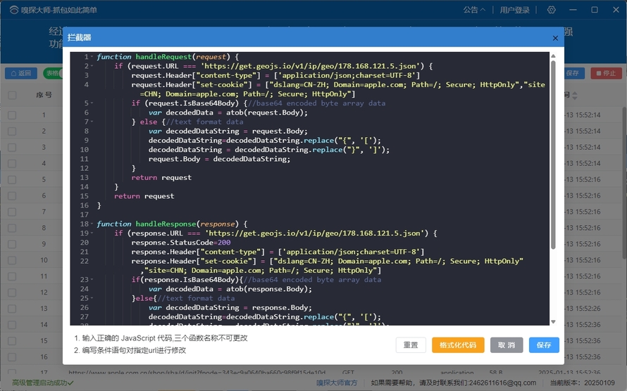 (2)点击编辑拦截器,可以对request和response进行更改。