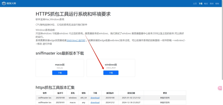 1.进入选择自己电脑版本(如我的是windows系统)下载并解压嗅探大师(sniff master),只有一个exe可执行文件,可直接双击使用,无需安装。