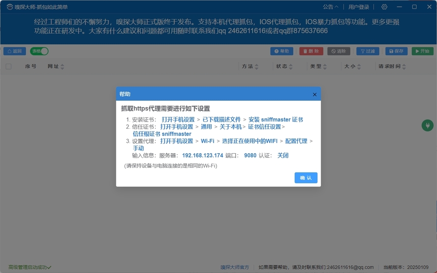 之前做网页端开发的时候找到一个抓包工具,嗅探大师,当时用来在Windows上面进行抓包,发现他在手机端iOS方面的抓包更为强大,而且还有HTTPS暴力抓包,无需设置代理,无需越狱,无需root,上手比市面上的一些抓包工具操作更简单。这篇文章先讲我使用普通的HTTPS代理抓包。