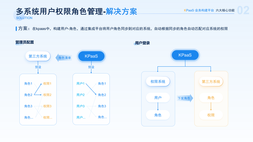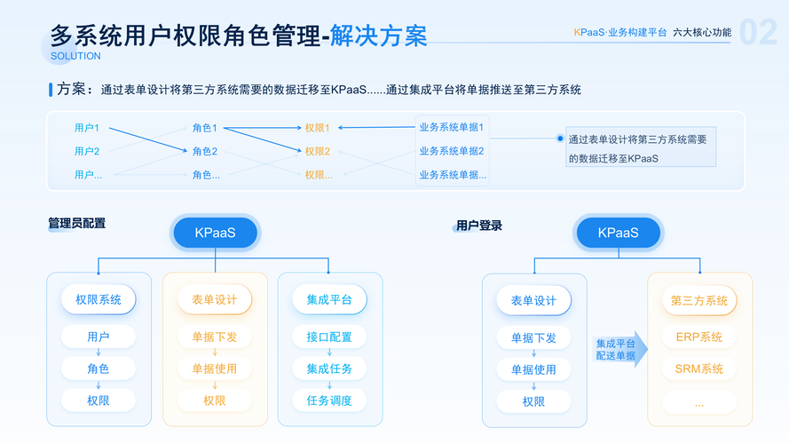 作为一款先进的集成平台,KPaaS 提供了面向多系统用户权限角色管理的创新解决方案,帮助企业实现高效的权限管理。KPaaS 平台的两种解决方案,能够在不同场景下满足企业需求: