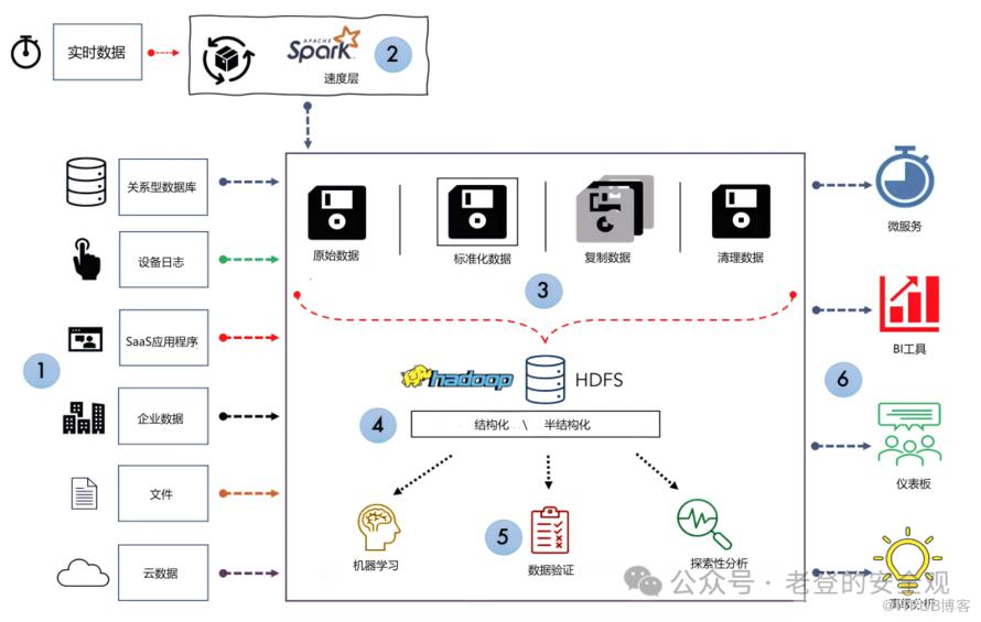 数据湖:作为数据的存储池,为后续的分析和处理提供原始数据。
