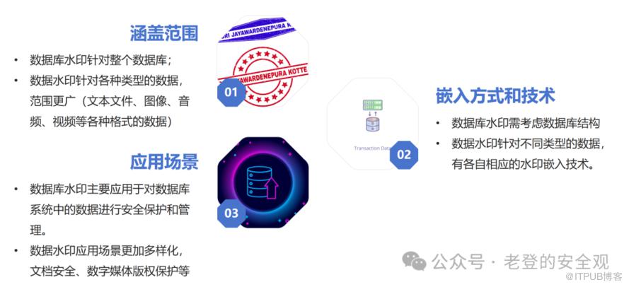 数据库水印就是通过对数据库中的数据,添加一种特定标识信息(即水印),嵌入到数据库中的技术中,用于标识数据来源、追踪流向、验证完整性和保护版权。这些标记不可见,但可由特定算法检测,帮助确认数据归属权,防止非法复制,并在数据泄露时追溯来源。