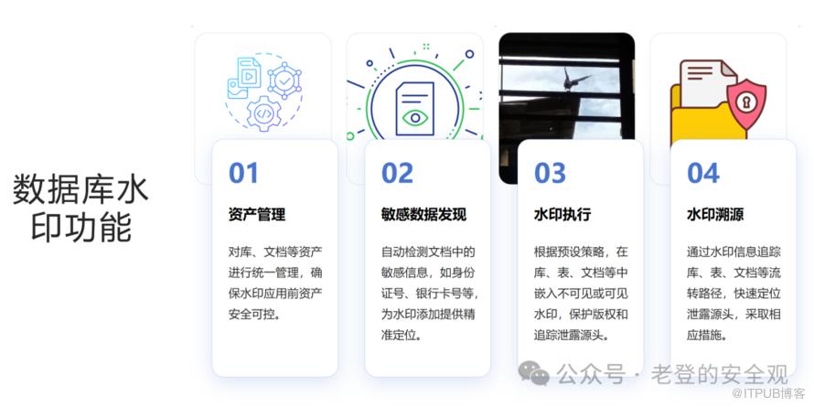 数据库水印产品,这一块功能相对来说比较单一,大致就四个,其余什么公共模块"系统管理、角色人员设置等",这一块说了也意义不大,大家都知道。