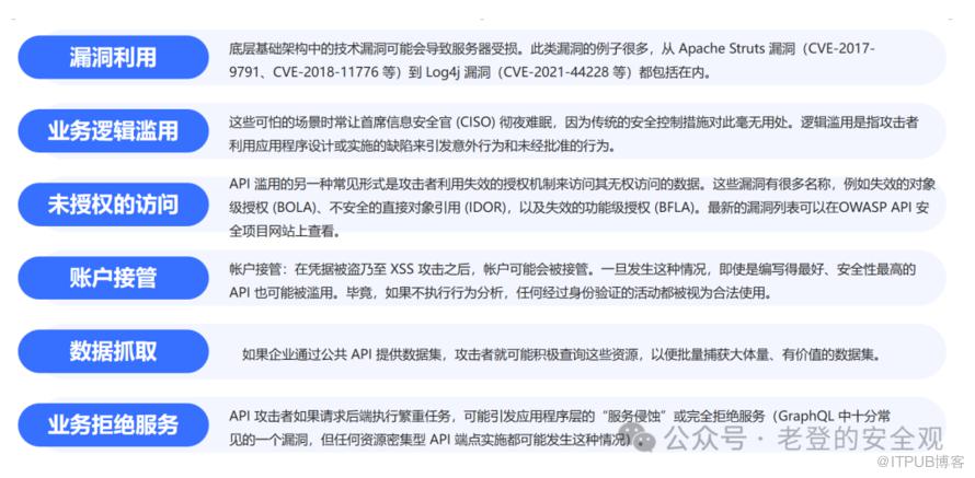 OWASP TOP 10 API 安全风险清单十分实用,其中概括了一些被广泛滥用的 API 漏洞,企业应该尽力识别和修复这些漏洞。这一块太庞大了,就不说了,细看可前往。