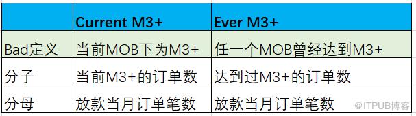 分子是逾期达到Bad定义时的订单笔数,假设Bad定义为M3+,分子同样有两种计算方式。