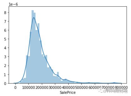 可以发现房屋的销售价格集中在10万美元-20万美元之间,存在明显的偏斜长尾。