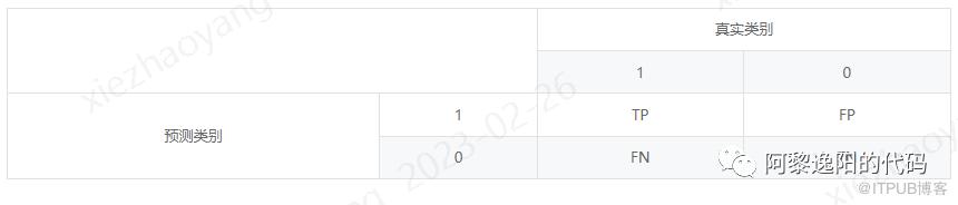 1. TP(True Positive):模型正确预测为1的数量,即真实值是1,模型预测为1的数量。 2. FN(False Negative):模型错误预测为0的数量,即真实值是1,模型预测为0的数量。 3. FP(False Positive):模型错误预测为1的数量,即真实值是0,模型预测为1的数量。