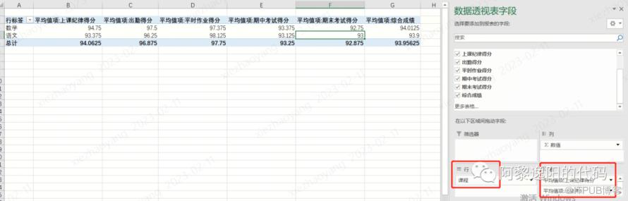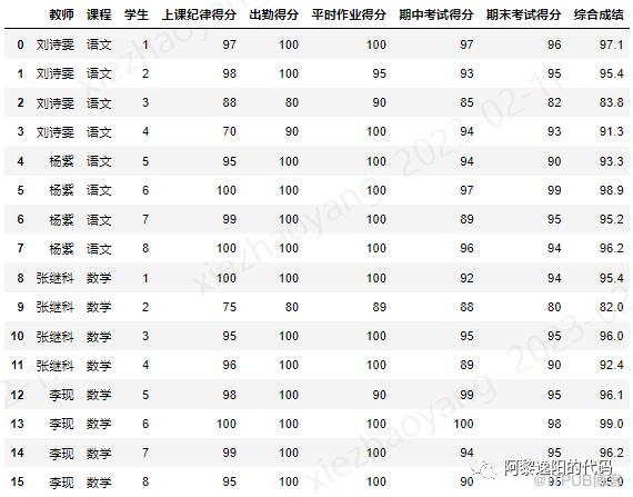 pd.pivot_table(date, index="课程", values=['综合成绩'], margins=True)得到结果: