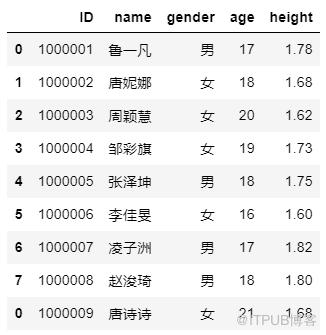 new_row = {'ID':['1000009'],'name':['唐诗诗'],'gender':['女'],'age':[21],'height':[1.68]}