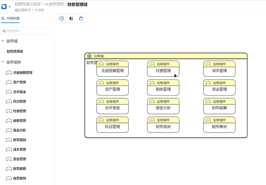 并且结合前期元模型中对象属性的配置,在架构设计中,可对各类架构对象所附带的属性信息进行补充与完善, 确保每个对象数据信息都通过结构化方式管理,为后续的架构分析与洞察。