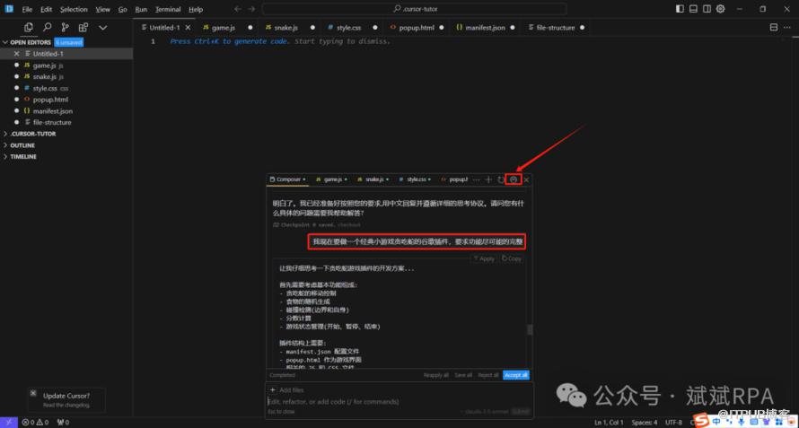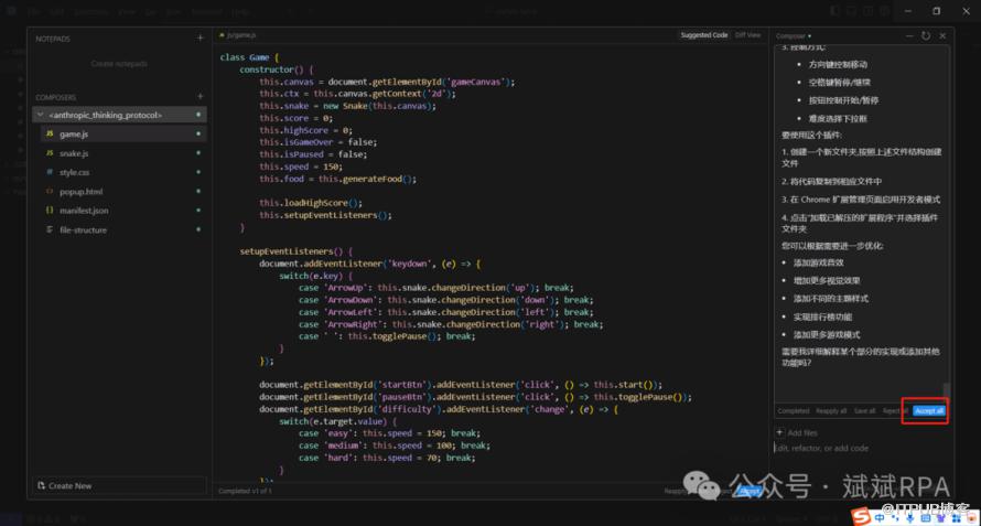 Cursor给我们生成好了,我们直接点击accept all 就可以了