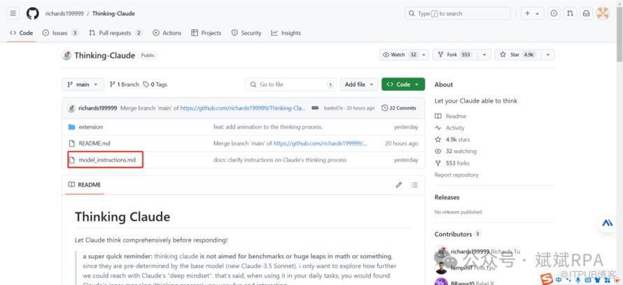 接下来,再输入大佬的神级Prompt,叫Thinking Claude,非常的长,github 原文地址:
