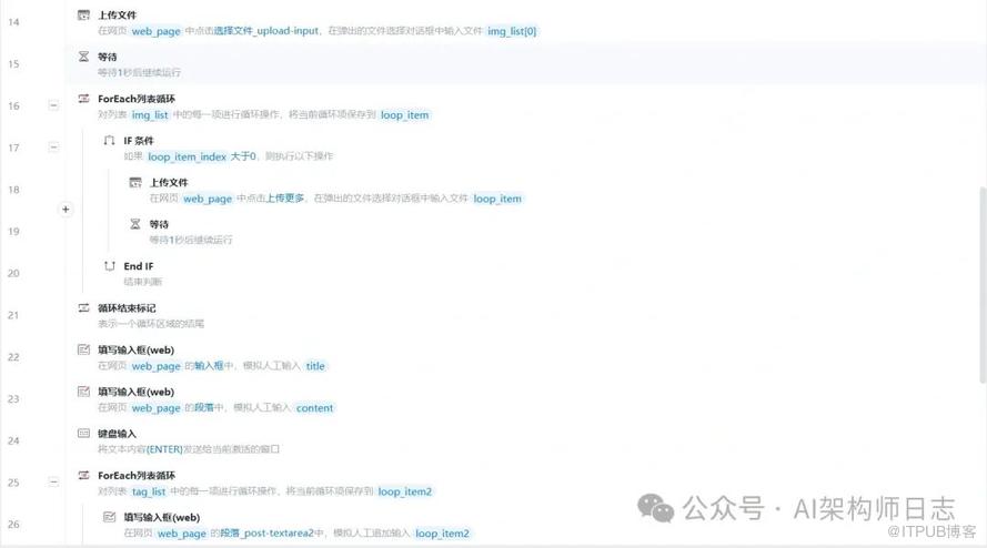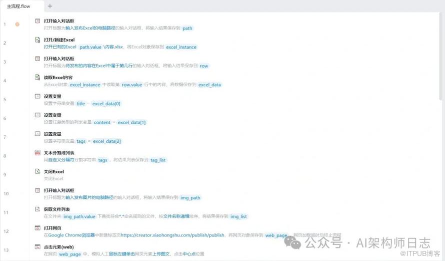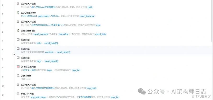 这一步,我们把文章标题、内容、标签、图片路径都存到变量中,方便后续使用。完整步骤如下: