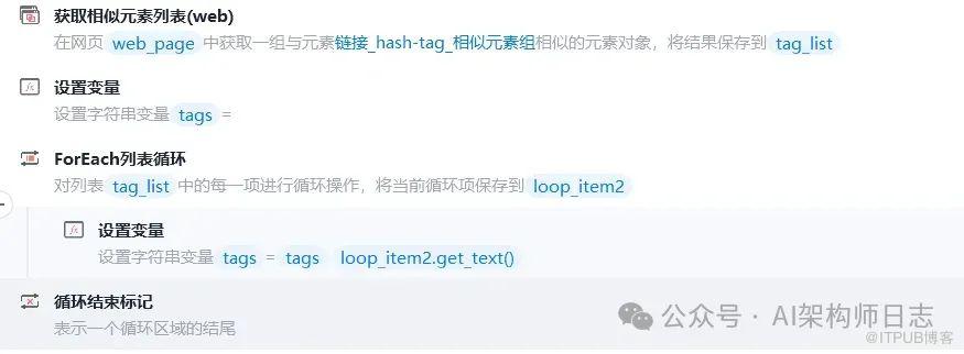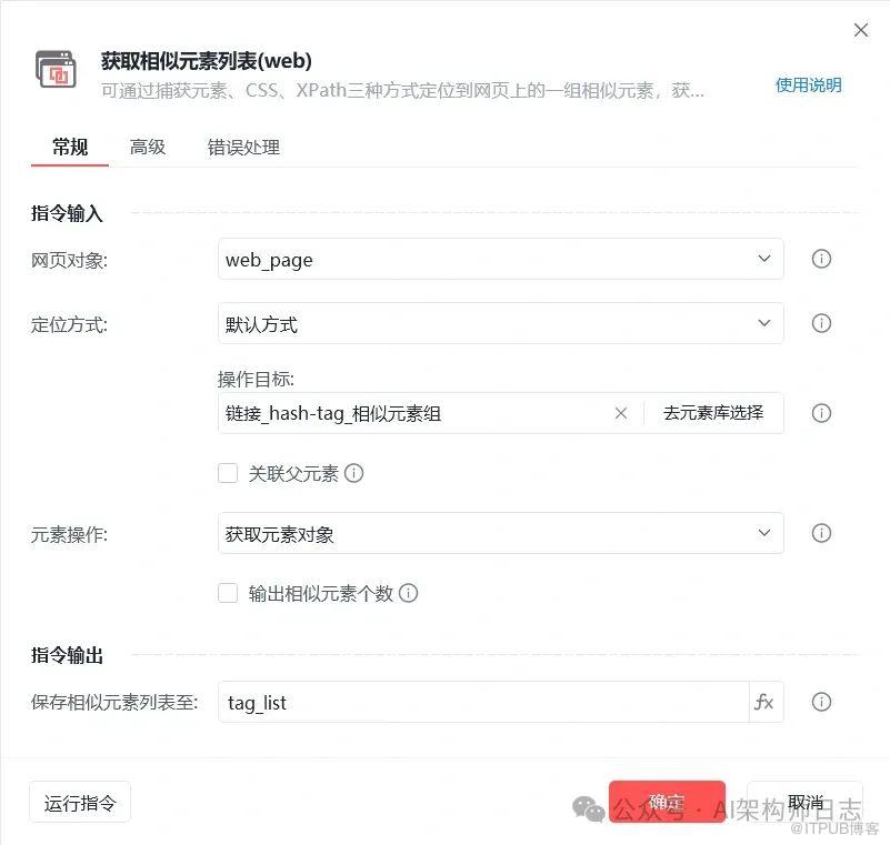 这里要使用【获取相似元素列表(web)】,因为这个标签是一个个的