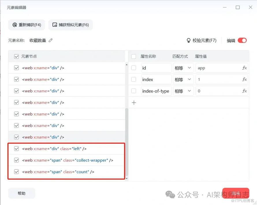 我们点击编辑按钮,然后调整一下勾选情况,让选择器选择的更加具体,如下图