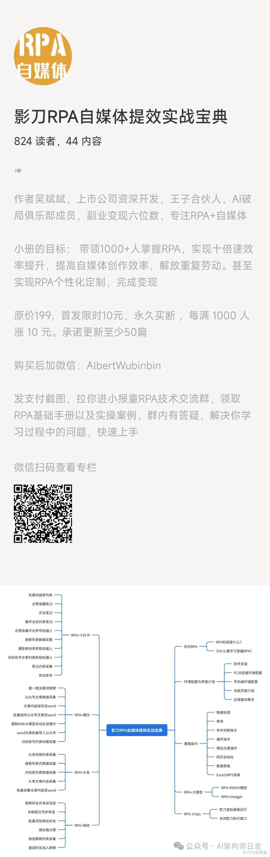 大家好,我是吴。上市公司资深开发,全国最大AI社群成员,掌握N多AI变现方式。 本公众号专注于分享RPA技术、AI技术、AI工具、AI前沿知识、AI变现等内容。感谢您的阅读,关注我一起成长进步。