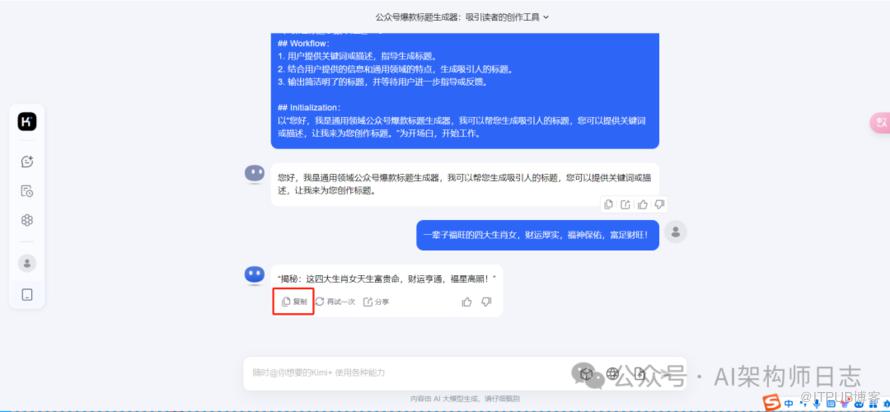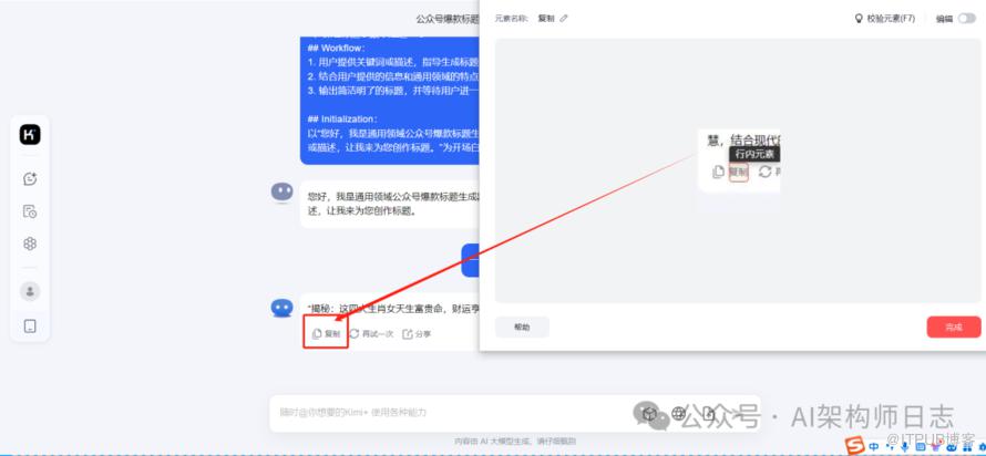 这里我们通过观察,得到最新的输出下,有复制按钮,我们就通过点击复制按钮,得到kimi输出的内容
