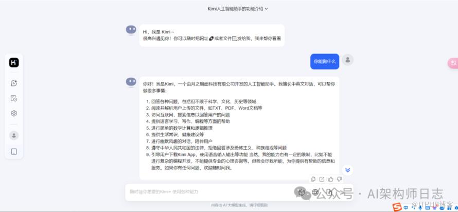 KIMI对话界面: