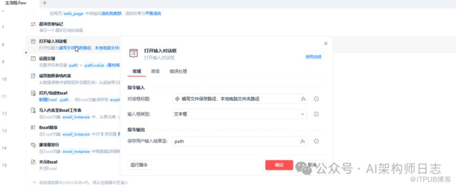 新建【打开输入对话框】,存储Excel存放路径