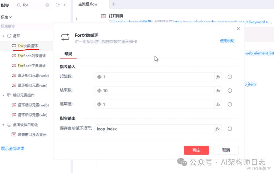 创建一个循环,这样我们可以多浏览一些记录。起始数设置为1,要循环几次,结束数就设置为几,递增值设置为1。我这边循环10次,结束数就设置为10