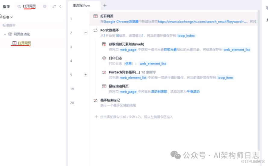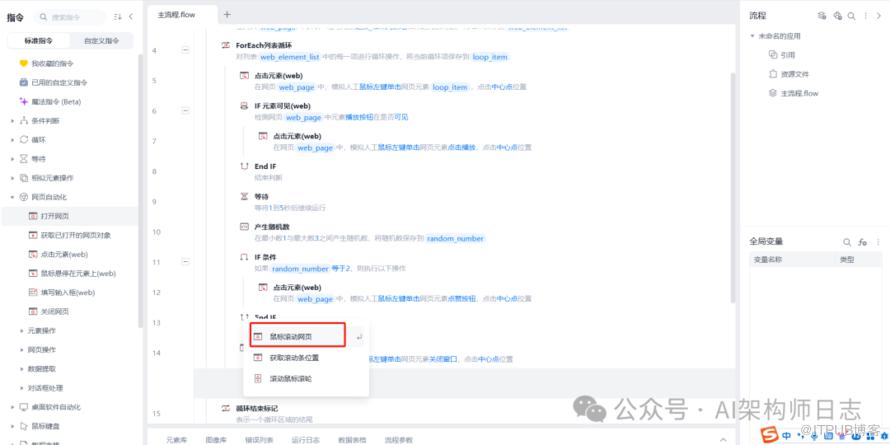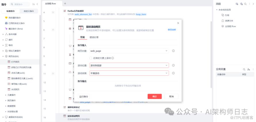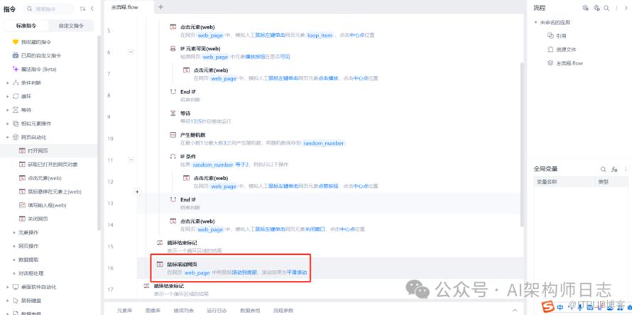在ForEash列表循环结束标记后,添加一个【鼠标滚动网页】
