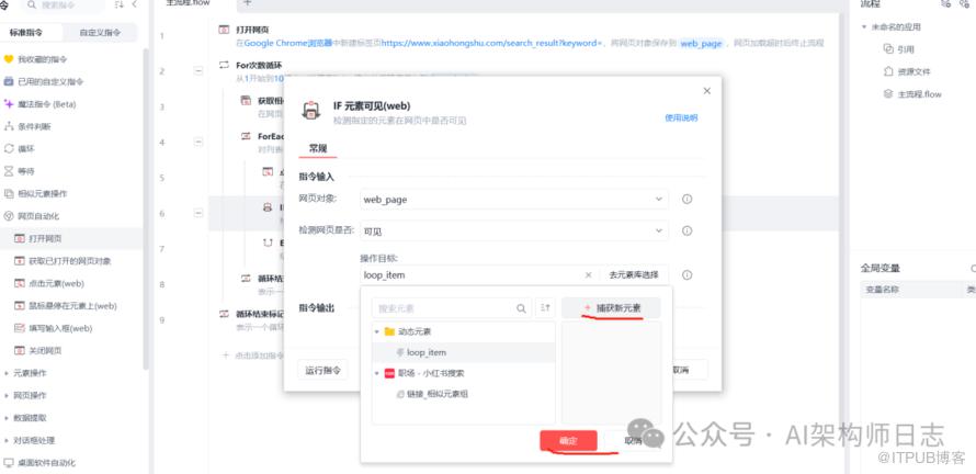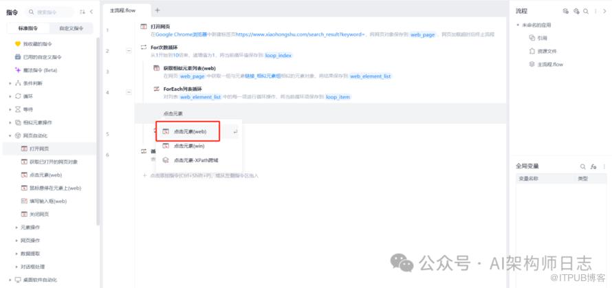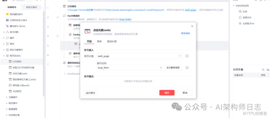 接着我们在判断里面,添加一个【点击元素(web)】,捕获一个点赞图片