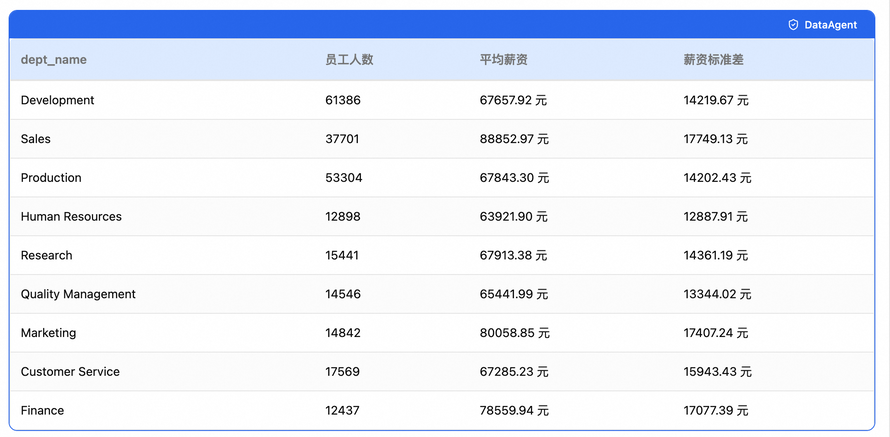 "description": "平均薪资分析卡片,展示各部门员工人数、平均薪资和薪资标准差。",