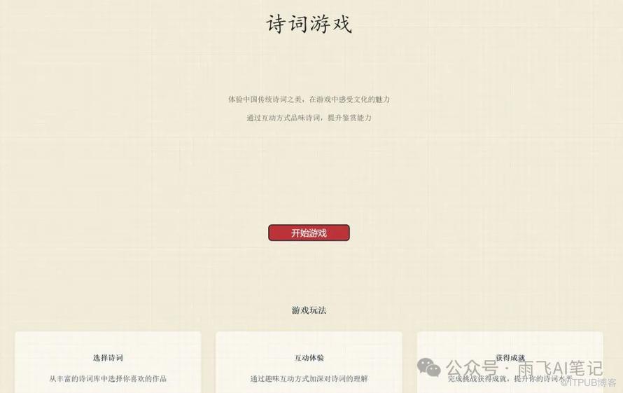我想做一个网站,提供一个古诗的划字连词游戏。游戏玩法是将一首诗的所有汉字打散,玩家需要正确的将汉字连接在一起,你认为适合用什么技术来完成它?请给出一个你最推荐的技术以及对应的脚手架。界面展示:
