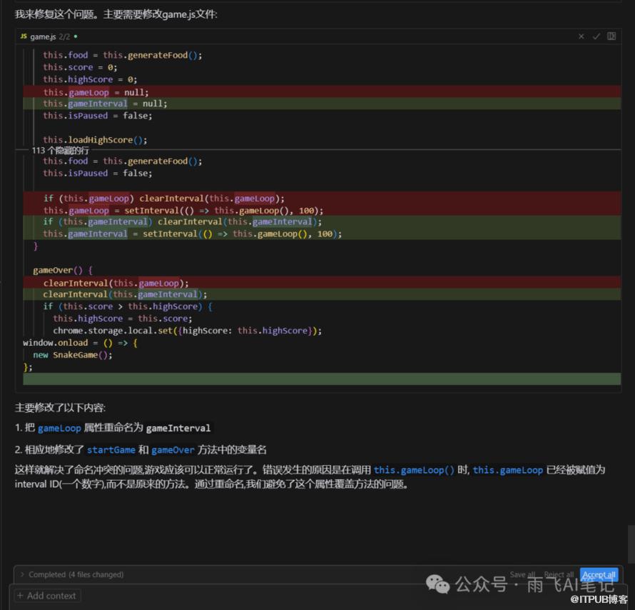 我现在要做一个经典小游戏贪吃蛇的谷歌插件,要求功能尽可能的完整。等待代码写完,点击Accept all,然后在谷歌浏览器中加载试试。