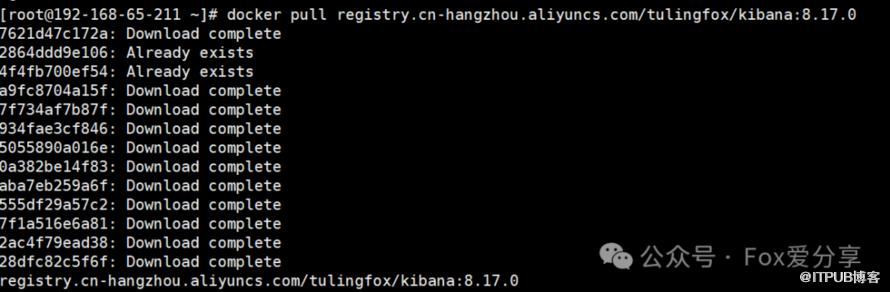 docker pull docker.elastic.co/kibana/kibana:8.17.0#如果拉取很慢,可以使用我的镜像docker pull registry.cn-hangzhou.aliyuncs.com/tulingfox/kibana:8.17.0