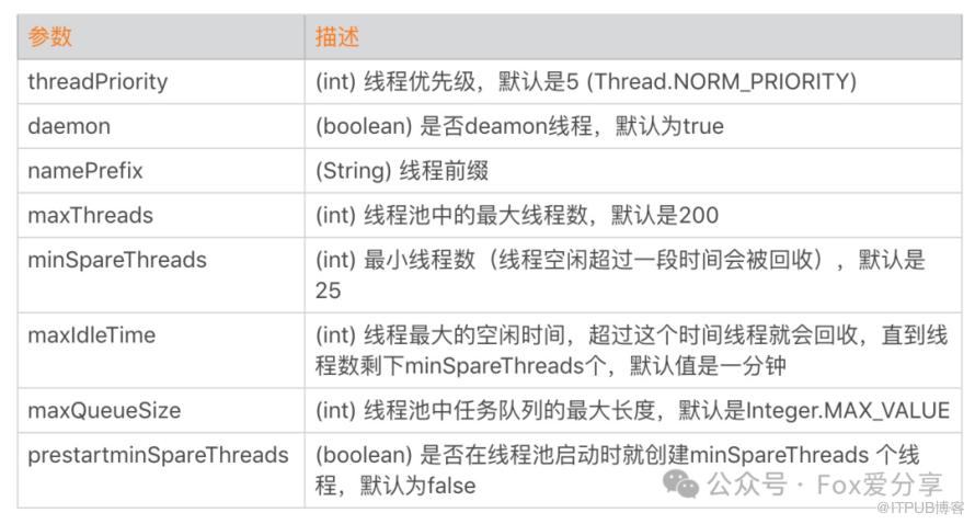 <Executor name="tomcatThreadPool" namePrefix="catalina-exec-Fox"prestartminSpareThreads="true"maxThreads="500" minSpareThreads="10" maxIdleTime="10000"/><Connector port="8080" protocol="HTTP/1.1" executor="tomcatThreadPool"connectionTimeout="20000"redirectPort="8443" URIEncoding="UTF-8"/>