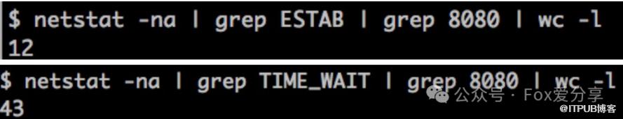 你还可以分别统计处在“已连接”状态和“TIME_WAIT”状态的连接数: