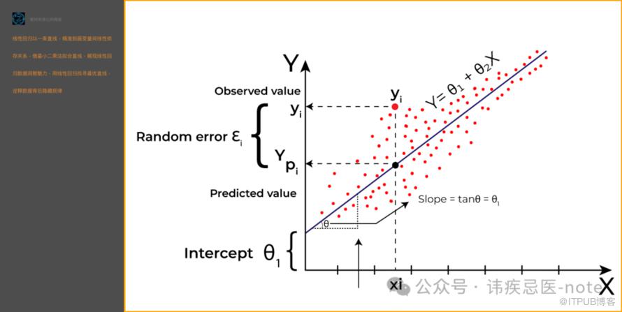 线性回归的基本方程“Y = βX + α + ε”看着很简单,不过呢这里面蕴含着几个重要的概念: