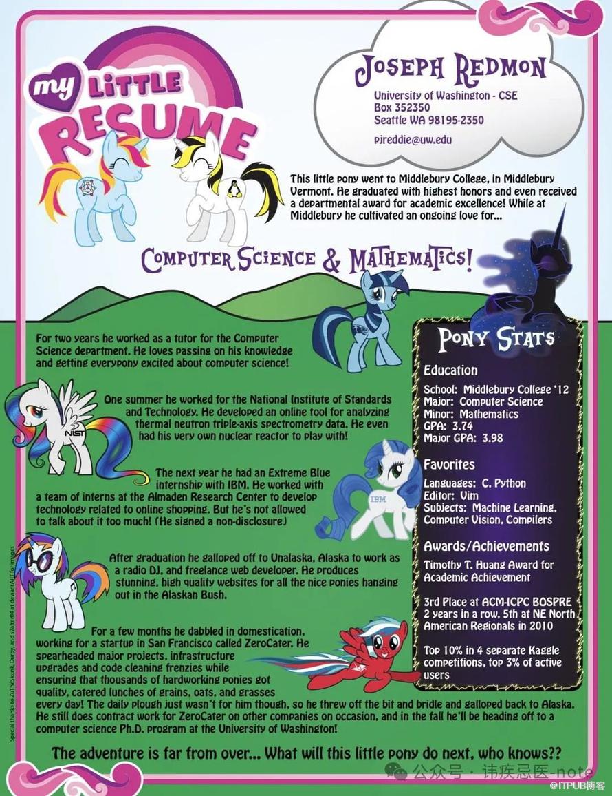 在中国人看来,约瑟夫·雷德曼不单是一位科技领域的先驱者,更是一位值得我们敬重与效仿的道德典范。以后我们期望更多的科技工作者能跟JosephRedmon一样,不光留意技术的进展,还更加留意它的社会影响,好让科技切实成为推动人类进步的力量。与此同时我们也盼望JosephRedmon能在新的领域一直闪耀光芒,凭借他的才智与胆量,给我们带来更多的惊喜与触动。(这哥们的简历,可爱吧)