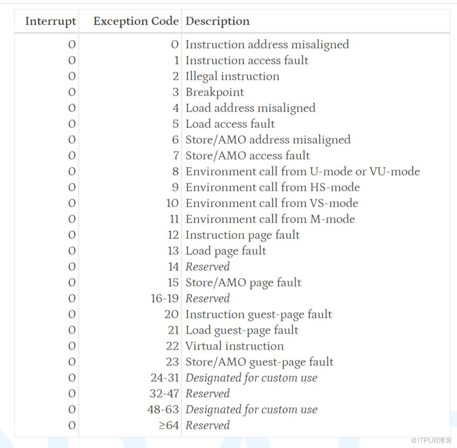 ;不存在单独的页异常,即页表读取异常(Load page fault)和页表保存/原子操作异常(Store/AMO page fault),而是合并到读取权限错误(Load access fault)和保存/原子操作权限错误(Store/AMO access fault)中。