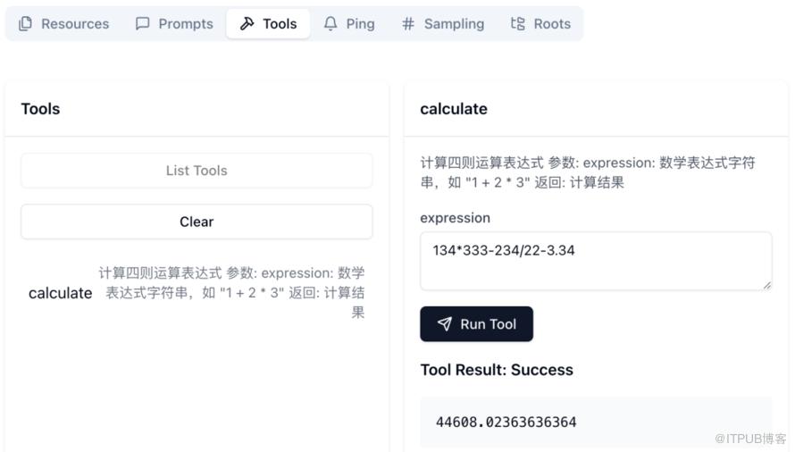 mcp dev server_demo.py现在访问http://localhost:5173,就进入可视化的调试界面,可以在这里直观的测试刚才的计算器工具: