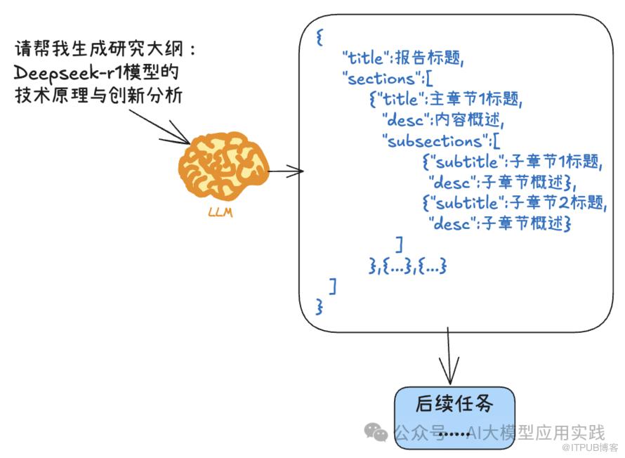 在一个自主学术研究的Agent中,希望借助DeepSeek-R1的深度思考能力,首先生成完善的研究大纲,后续再根据大纲对每一个子主题借助搜索引擎、RAG等获取参考资料,并做进一步研究。