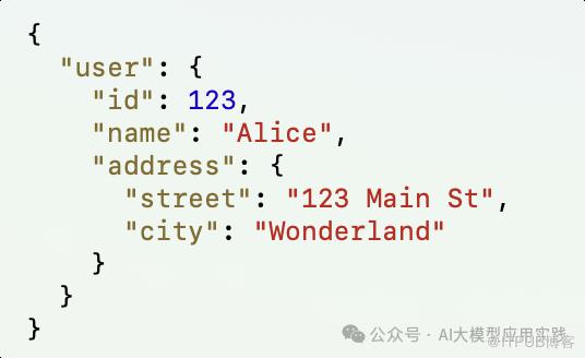结构化输出就是大模型在生成响应时,以一种有结构的规范化形式呈现,而不是自由文本。这种结构化的输出通常包括预定义的字段、标签、列表、表格、或者其他形式的组织化数据,而最常见也是最灵活的一种表达形式就是JSON。比如输出一个结构化的用户信息可能如下:
