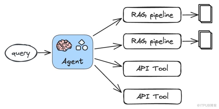 与顺序式的传统RAG架构相比,Agentic RAG的核心是Agent,而RAG管道(通常是检索器,也可能是完整的RAG查询引擎)则可以看作是Agent使用的一种工具,从而完美的融合到Agent的架构中。
