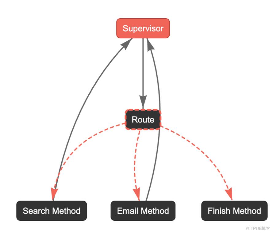 用CrewAI Flows来模拟实现上面的Supervisor模式的工作流,又是一种完全不同的方法,这里我们给出一个模拟的实现(借助LLM推理与调用Agent的部分被省略):