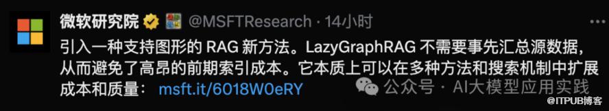 根据微软介绍,LazyGraphRAG 是一种兼具向量 RAG 和 Graph RAG 优势的新方法,同时针对它们在不同场景中的局限性进行了优化。