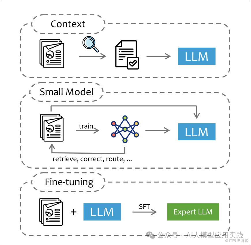 整体而言,把外部数据与知识"注入"到大模型的技术可以分为主要的三种方法: